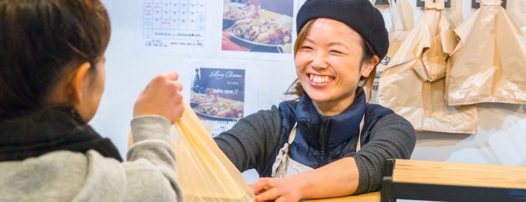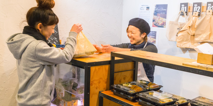 パンの日を狙ってくるお客様も増えてきた。「せっかく上下に来てくださるのだから、上下のよさをもっと知ってもらいたい。そして、人が温かいことを感じてほしい」と、手作りの料理に笑顔を添えて手渡している。