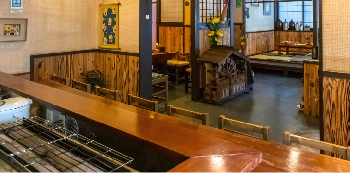 開店して7年たったころ、お客様を旅館のスペースに案内したり、お断りしたりすることも増えてきた。旅館を改装し、現在の形である居酒屋の営業を始めた。開店当初からのカウンター席に加えて、個室にもなるテーブル席、座敷席がある。仕出しにも対応。主にご夫婦で営業している。