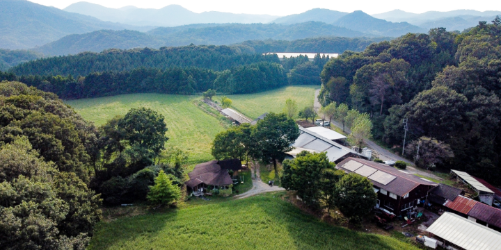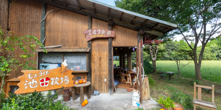 青々とした草原に大きな木陰、揺れるブランコ。そばで草をはむ牛やヤギたち。上下町の山あいにある「池田牧場」には、まるで絵本の世界のようなかわいらしい景色が広がります。土・日曜、祝日は一般開放され、乳牛と触れ合ったり、カフェでミルクを使ったスイーツを楽しんだりすることができます。