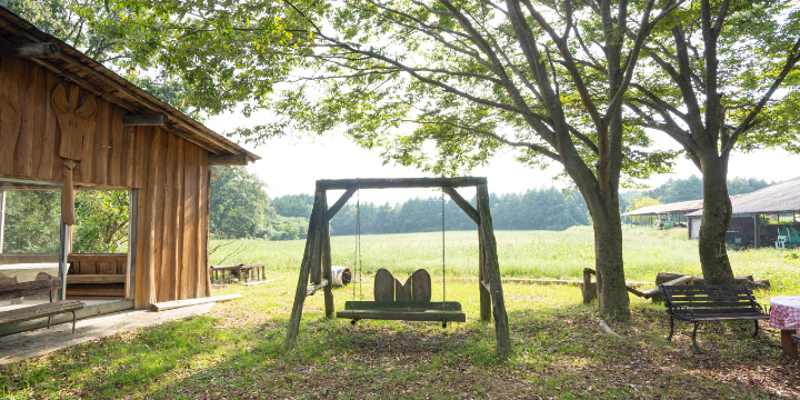 2人掛けの木製のブランコ。「ラブラブでブラブラ乗ると、ケンカをしていても仲直りします」と香奈さん