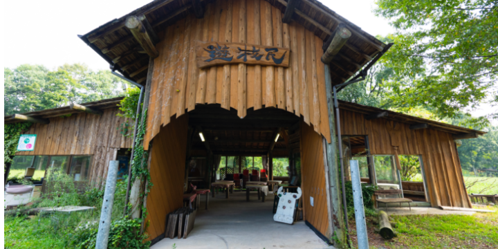 視界にあるモノや建物のほとんどが手造り。屋根のある多目的ホールは、香奈さんの妹が結婚する際にパーティーができるようにと造ったそうだ。廃材を使い、約1カ月半で完成させた。今は体験施設として利用している。