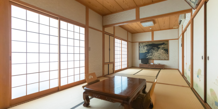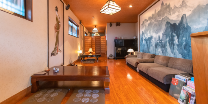 各部屋に洗面が付いていて、トイレや浴室は共有。「気兼ねがないように、宿泊はなるべく1組にしています」とのこと。「お二人以上の場合は、1組でも2部屋を使っていただくんですよ」と、仕切りを取り払うと広々とした空間が現れた。6、7人で利用しても十分な広さだ。