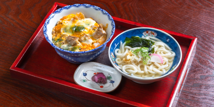 地元の方に人気の「親子丼」。うどん(小)とセットで1,150円