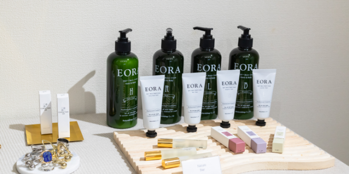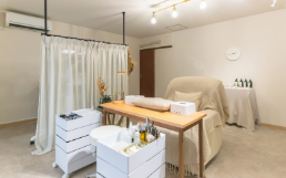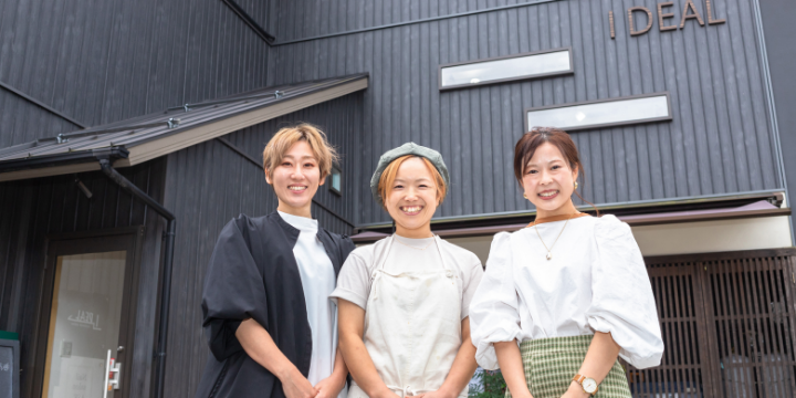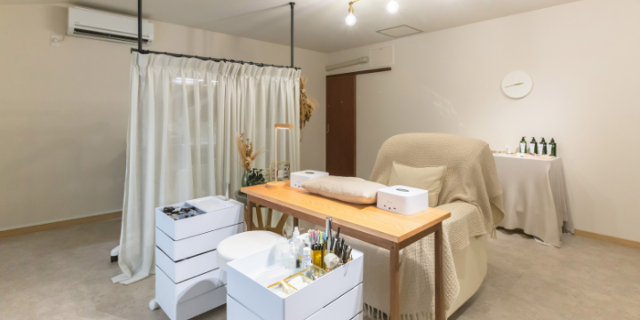 上下町出身で、上下町で生活していた池田さん。お子さんが小さいこともあり、まずは自宅で活動を始めた。子育てするママとして出会った中山美佳さんと大畑乃愛さんの声掛けで2019年、上下町商店街にある惣菜店「ホームキッチン」の2階にサロンを構えることに。中山さんは、アスクと同じ2階にある、まつげエクステンションの専門店「アイリッシュサロンIDEAL」のオーナーだ。そして建物のオーナー、ホームキッチンの大畑乃愛さんも子育て中のママ。「この場所なら楽しそう、やってみたい、ママ友というつながりで何かが生まれそうって思えました」
