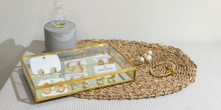 池田さんはデザインを考えるとき、アクセサリーを参考にするそうだ。ふと時間が空くと広島市内に出かけて、アクセサリーや洋服の店舗をめぐる。色使いやデザインのトレンドをつかみ、池田さん自身の好みや得意を加えながらデザインのアイデアを固めていく。店内で販売しているアクセサリーは、池田さんがセレクトしたもの。池田さんのネイルデザインとの相性はもちろん抜群。ネイルと合わせてほしくなる。