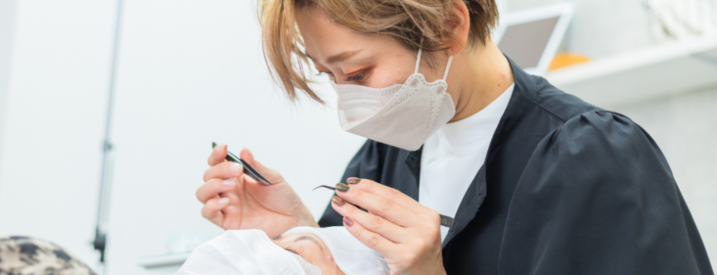 エクステとはエクステンションの略で、継ぎ足す毛のこと。まつ毛のエクステは、自分のまつ毛に、人工のまつ毛を装着して長さやボリュームを出す。同サロンでは主に、このまつ毛のエクステやまつ毛パーマ、トリートメントのための美容液販売、そして歯のセルフホワイトニングのサービスを提供している。