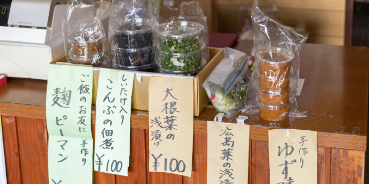 旬の材料で作った佃煮や漬物が評判、手芸品もにぎやか