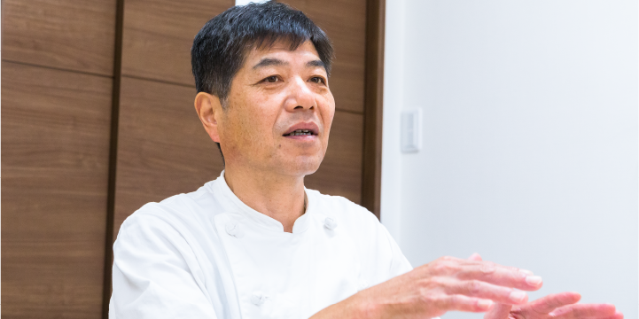先代の曽根さんが高齢のため引退するということで、お隣で食料品店や仕出し業を営まれていた前原浩一社長が平成17年に看板を受け継いだ。地域で長い間、愛されて来たお菓子が無くなってしまうのは惜しいという想いがあった。「最初は素人だから、生地が焼けているのかを判断するのも難しかった。」と前原社長。曽根さんから、洋酒ケーキづくりのイロハを一から教わった。材料や製法は、先代のころから変えず同じ味を守っている。