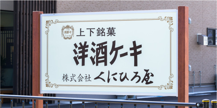 半世紀にわたり、上下町で愛され続けている「くにひろ屋の洋酒ケーキ」のルーツは昭和36年まで遡る。先代の曽根利之さんが、尾道のお菓子屋さんで修行した後、フランスの焼き菓子サバランをベースに、考案したのが始まりだ。今もパッケージに印刷されているサバランの文字にその名残が見てとれる。