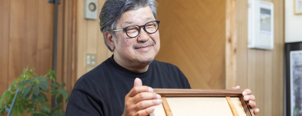 「無色透明だけど確かにある。主役ではないけれど、主役と肩を並べる名わき役。作品の邪魔も空間の邪魔をしない。家具と並べても違いがないものを意識した」と代表取締役社長の服巻年彦さん。作品を入れて飾るための額ぶちに、インテリアとしての魅力も加えた。フォトグラファーやアーティストからのオーダーが増えている。