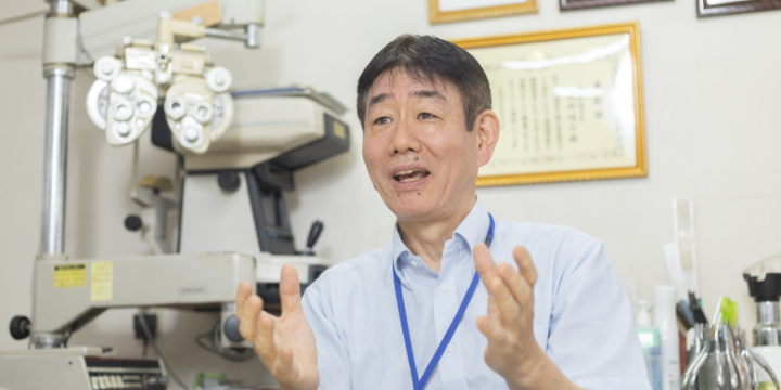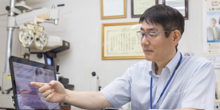 眼鏡は検査データだけで作ることはできない。データはあくまで参考資料。使う人の生活環境や仕事に合わせて、その人がどう見えたら快適なのかを考えなければならない。例えば、事務仕事が多いのに遠くがよく見える眼鏡にすると、いつも緊張した状態になって疲れやすくなってしまう。「目から肩こり、頭痛、全身の不調につながるから」と心配し、遠くは緩めの見え方にしておく。