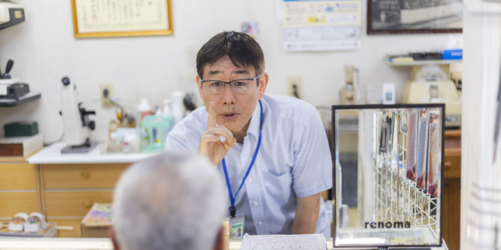 「補聴器をつければ、全ての音が聞こえるようになるというのは誤解です」と秀明さん。声には高い低いがあり、滑舌の良し悪しも人によって違う。遠くにいる人の声が聞こえにくい、大人数の中だと聞こえづらいなど、状況によって聞こえ方は違ってくる。眼鏡のように「あの文字が見えるようになる」という分かりやすい目標設定ができない。だからこそ、補聴器は、調整を重ねて自分に合う補聴器にしていく育てるような時間が必要だ。「眼鏡よりも補聴器のことを理解していただくのが大変です。とてもエネルギーがいることです。補聴器を自分に合うものにするために、本当にやる気があると約束してもらわないと売らないんです」と話す。