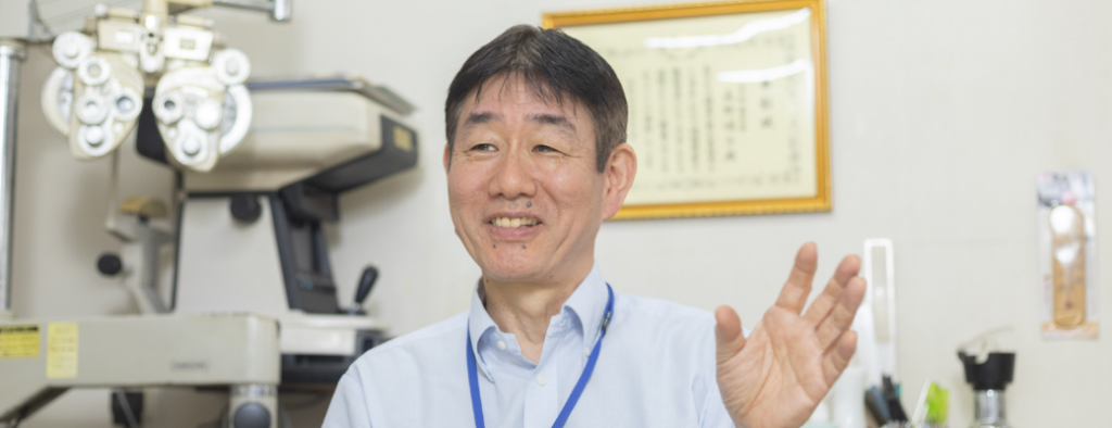 随分前に、乱視用の眼鏡をつくったときのこと。1カ月後、「よく見えない」と再び来店があった。話を聞くと、眼鏡はあまりかけず、すぐに返品するのは悪いからと1カ月待って来店したとのこと。「慣れるまで頑張ってかけてくださるかどうかを、僕がもっと会話をして確認すべきだったと反省した。乱視は脳で補正して正しくみている状態のため、乱視用の眼鏡で正しく見えるようになるまでに一定の期間がかかる。自分に合う眼鏡にしていくには、お互いの信頼関係が必要なんです」と力を込める。