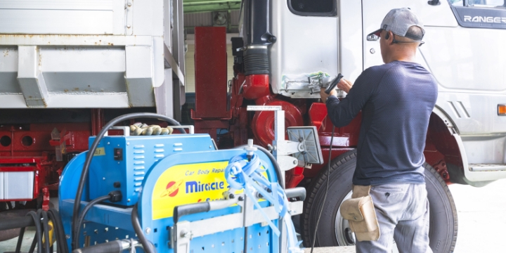 「よう続いたもんよ」と享さん。事業を始めた昭和時代は、ハンマーで鉄をたたいて部品をつくり、それを切ってつないで仕上げていた。ほとんどの鈑金業者で、お客様からの信頼のもとで車の足回りやエンジンの分解や整備も行っていた。昼は鈑金、夜は塗装。小さな町では、専業では仕事が限られるため両方していたとのこと。「田舎なのでなんでもする」と農機具の修理もしていた。それは今も同じだ。