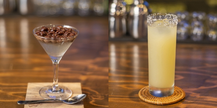 (左)「いいちょこ」時間が経つにつれて麦チョコが少しずつ溶けて、飲むたびに味わいが変化。(右)「ソルティライチカクテル」ライチのフルーティーな香りと甘みを塩味が引き立てる一杯。